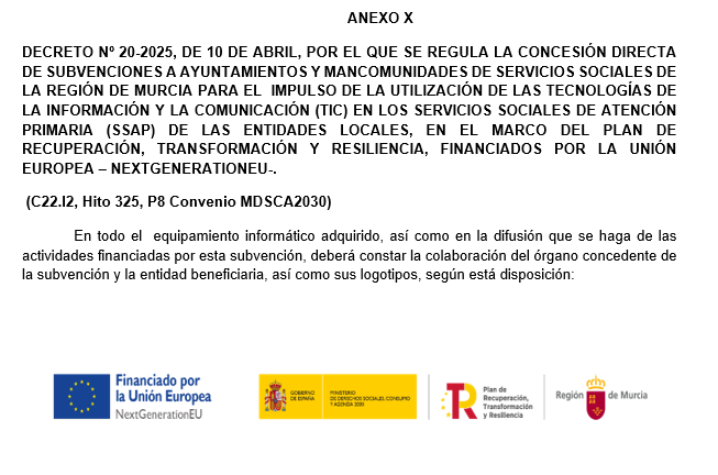 CONCESIÓN DIRECTA DE SUBVENCIONES A AYUNTAMIENTOS Y MANCOMUNIDADES DE SERVICIOS SOCIALES DE LA REGIÓN DE MURCIA PARA EL IMPULSO DE LA UTILIZACIÓN DE LAS TECNOLOGÍAS DE LA INFORMACIÓN Y LA COMUNICACIÓN (TIC)