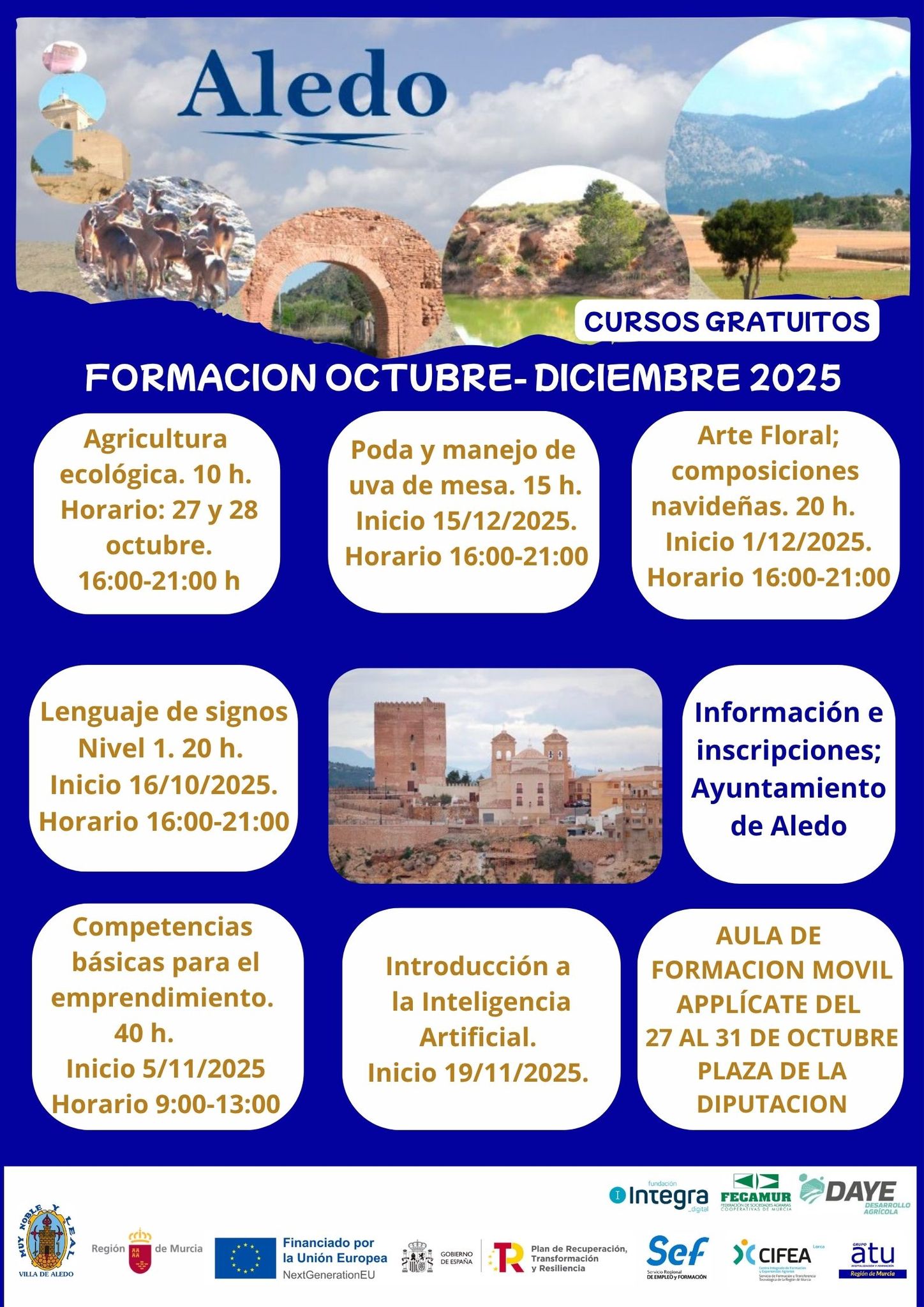 CURSOS GRATUITOS EN ALEDO NOVIEMBRE-DICIEMBRE 2025