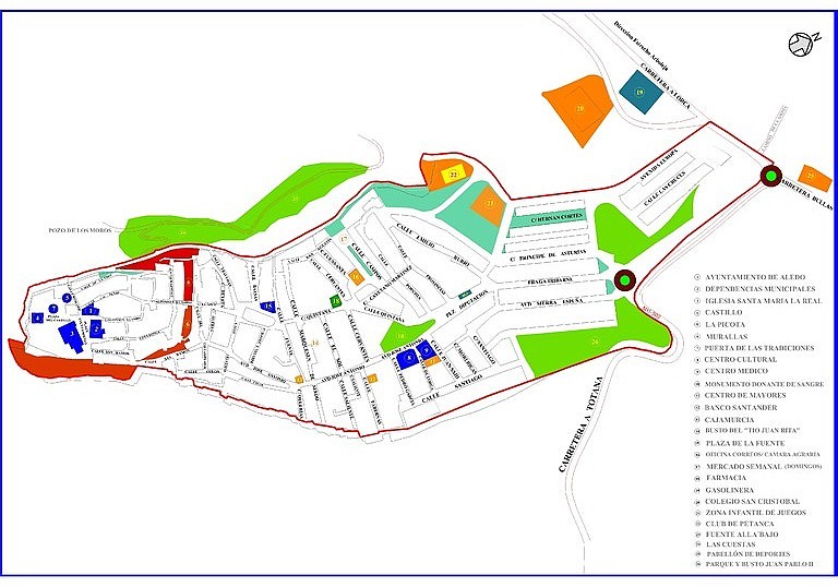 Aquí puedes descargar el callejero del casco urbano de Aledo con sus principales monumentos señalados