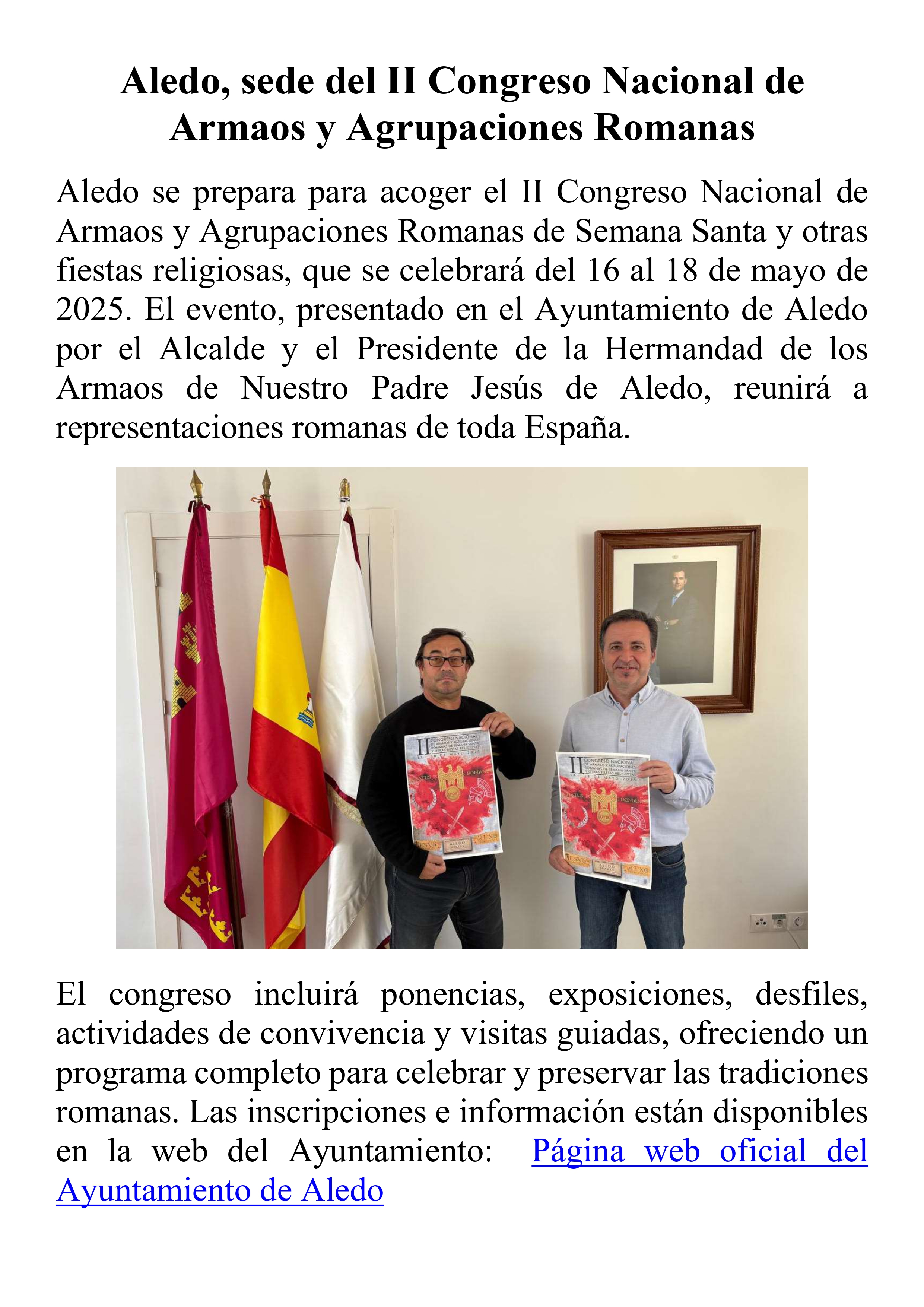 ALEDO, SEDE DEL II CONGRESO NACIONAL DE ARMAOS Y AGRUPACIONES ROMANAS