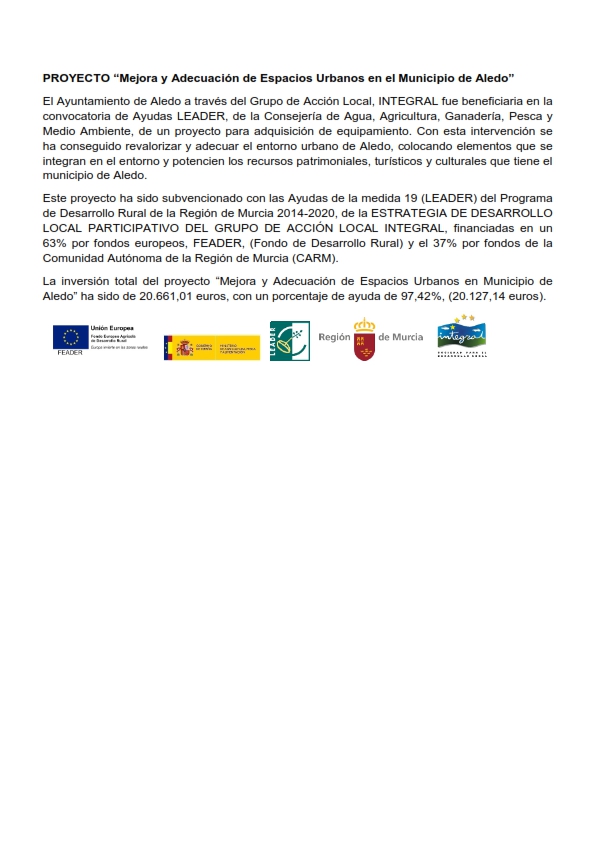 proyecto “Mejora y Adecuación de Espacios Urbanos en Municipio de Aledo” ha