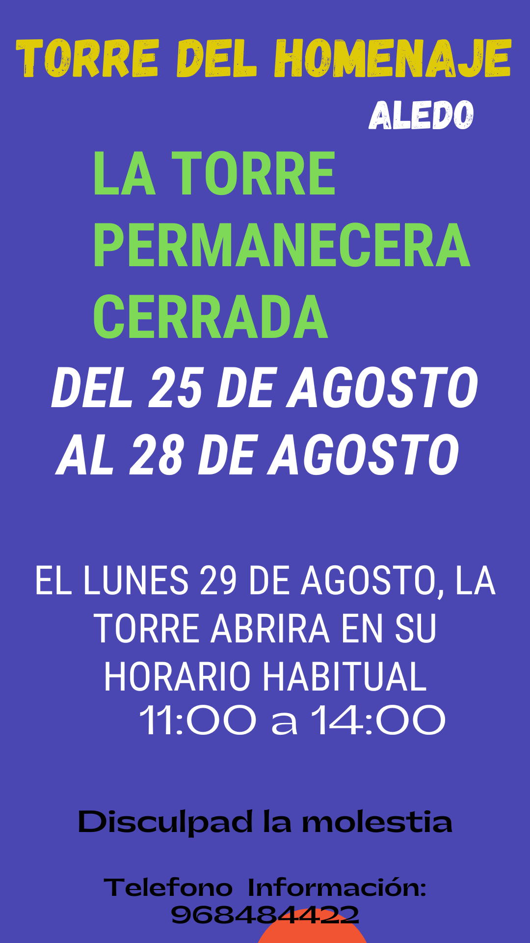La torre del homenaje y el punto de informacion turistico permaneceran cerrados los dias 25 al 28 de agosto