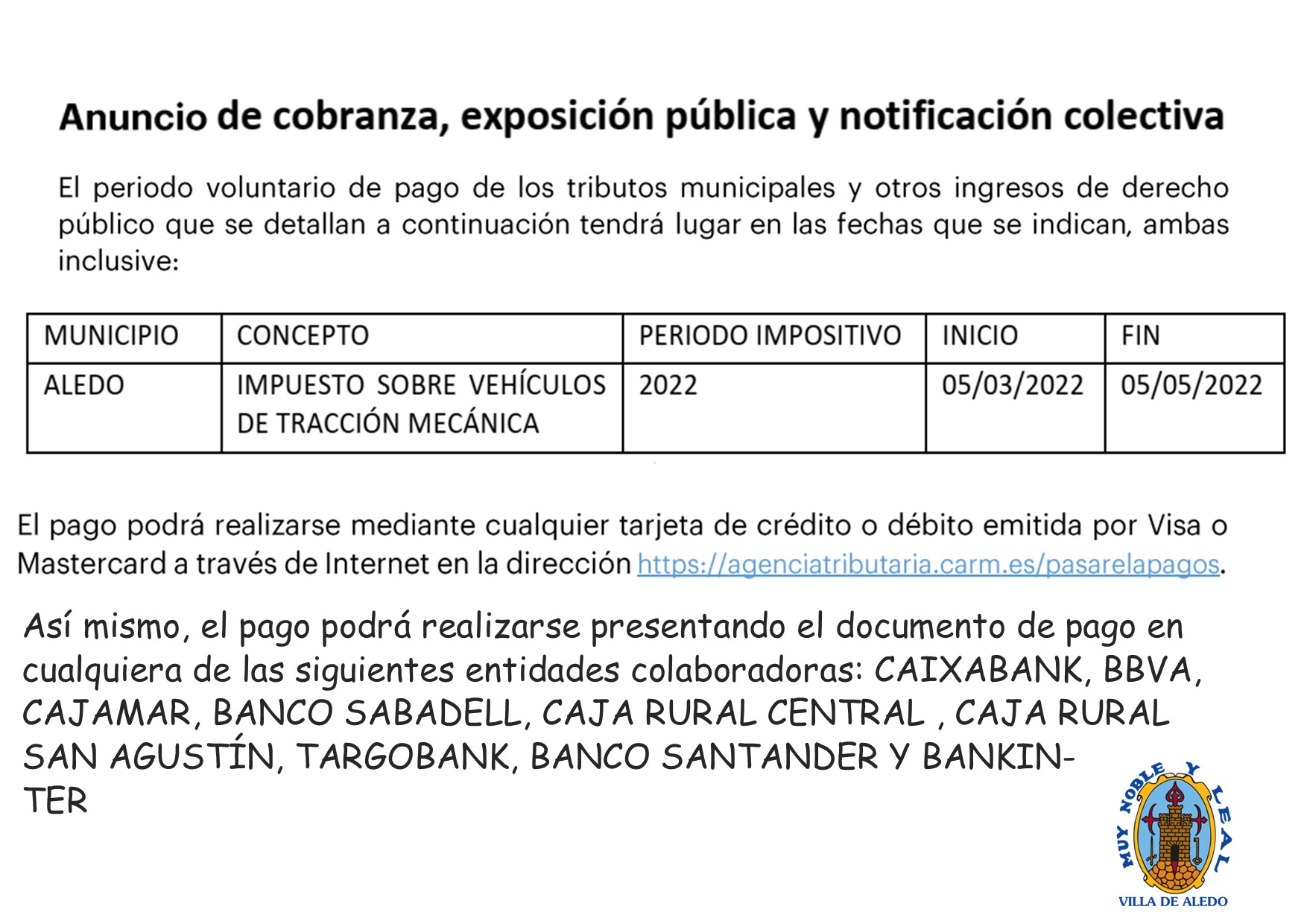 COBRO IMPUESTOS SOBRE VEHICULOS DE TRACCION MECANICA (IVTM)