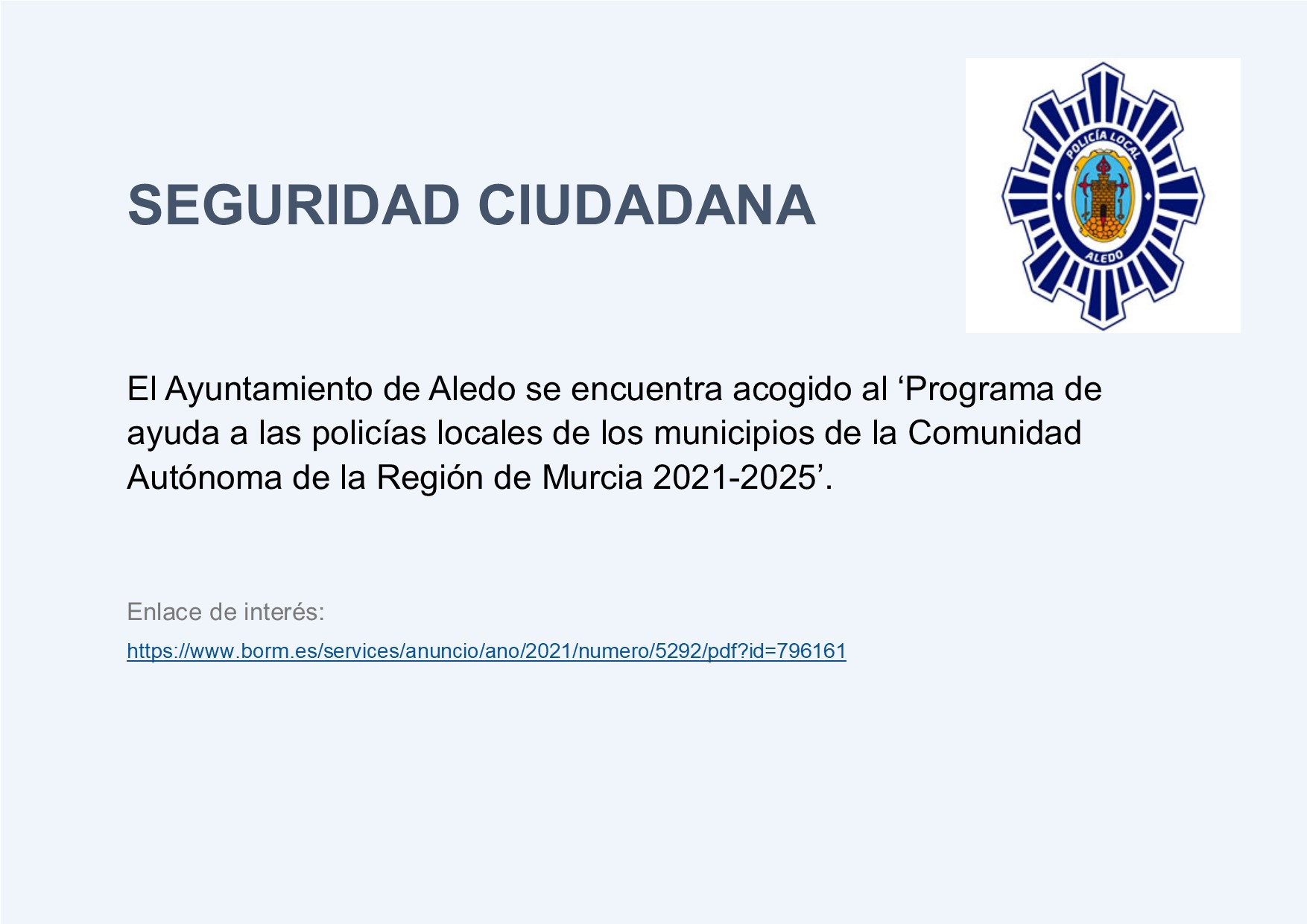 El Ayuntamiento de Aledo, el pasado 27 de diciembre de 2021, inició el programa de Empleo Público Local 2021, con la contratación de un auxiliar administrativo en el marco del programa de Empleo Público Local subvencionado por el Servicio Regional de Empleo y Formación(SEF).