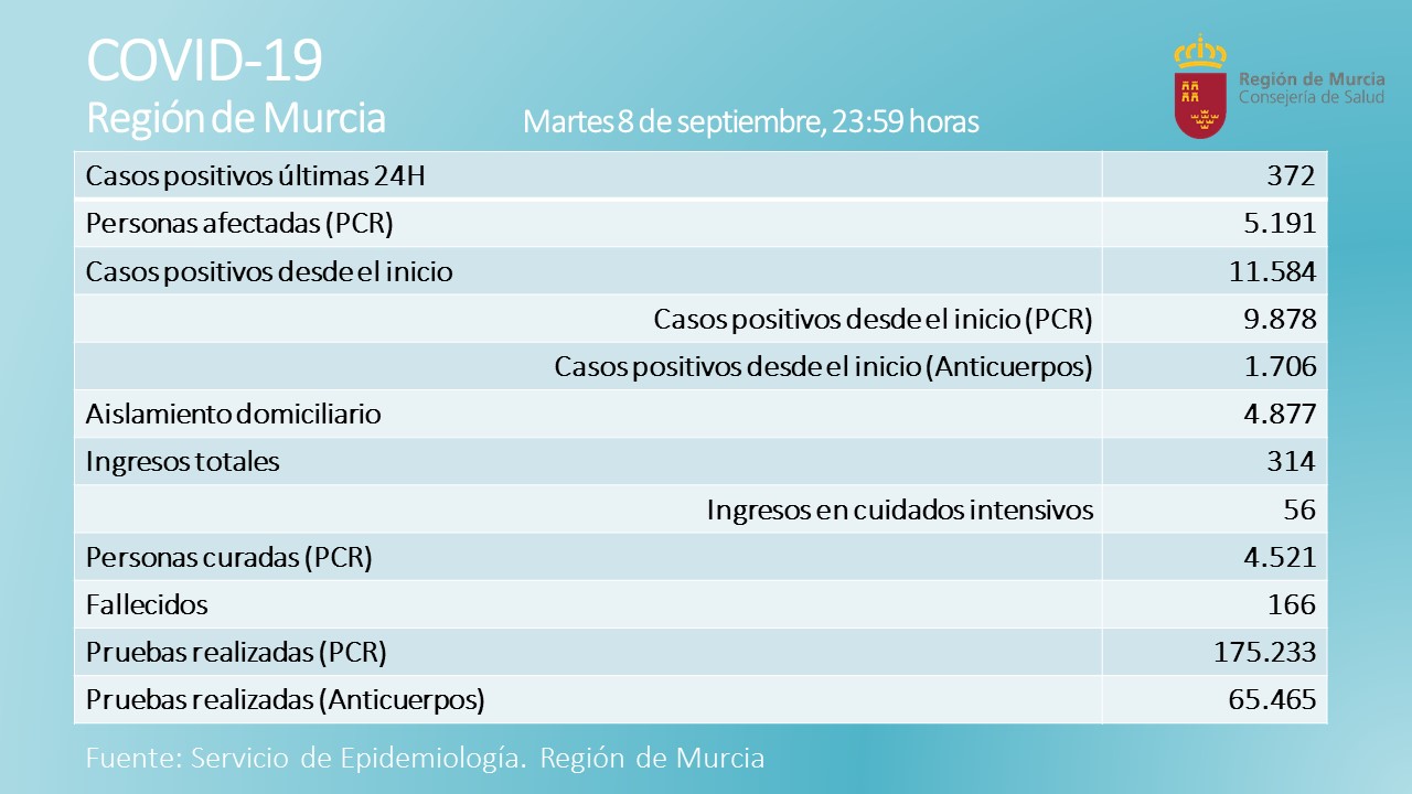 INFORME EPIDEMIOLÓGICO DIARIO COVID19 EN LA REGIÓN DE MURCIA 16 de septiembre de 2020