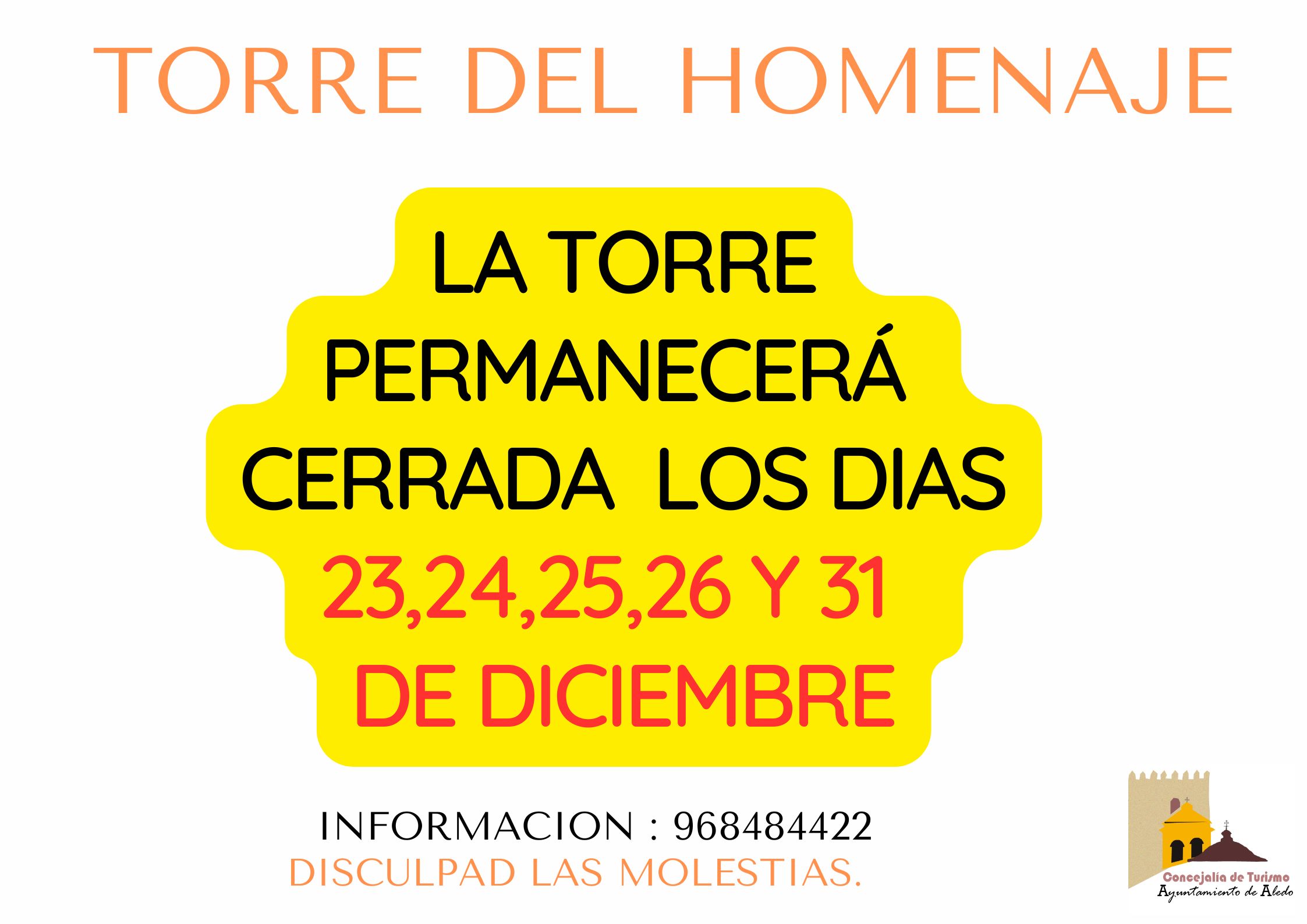 La torre permanecerá cerrada los días 23,24,25,26 y 31 de diciembre.