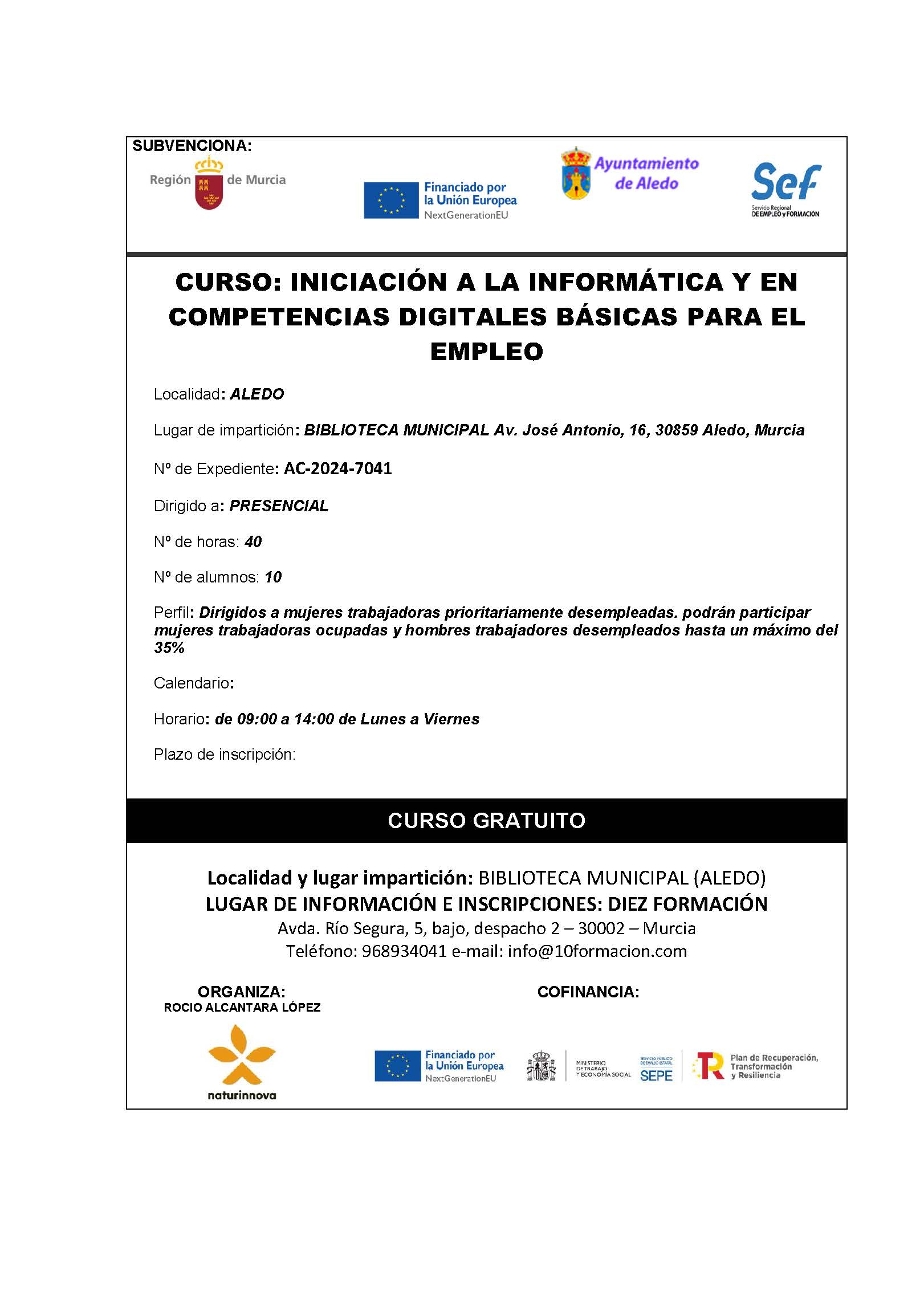 Para mas información e inscripciones: 968484422 (Ayuntamiento de Aledo)